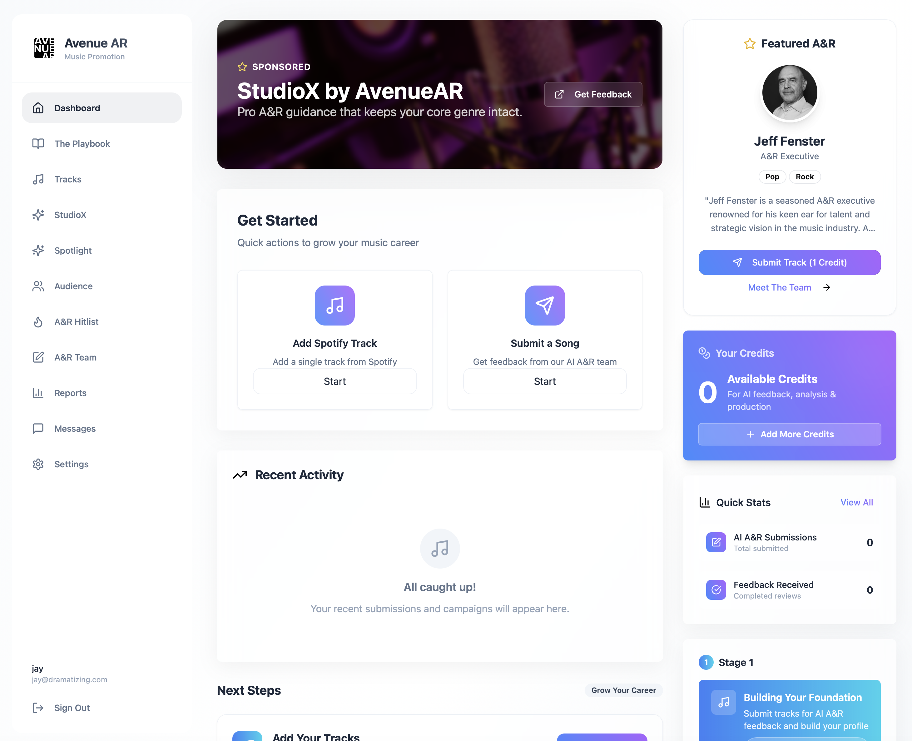 Picture this: you drop a simple sound, a rough vocal, or an unfinished track into AvenueAR. Within minutes our AI + A&R team turns it into a release-ready hit song—and you can instantly submit that track to major label execs and sync agents who are actively hunting for AI-powered music right now.