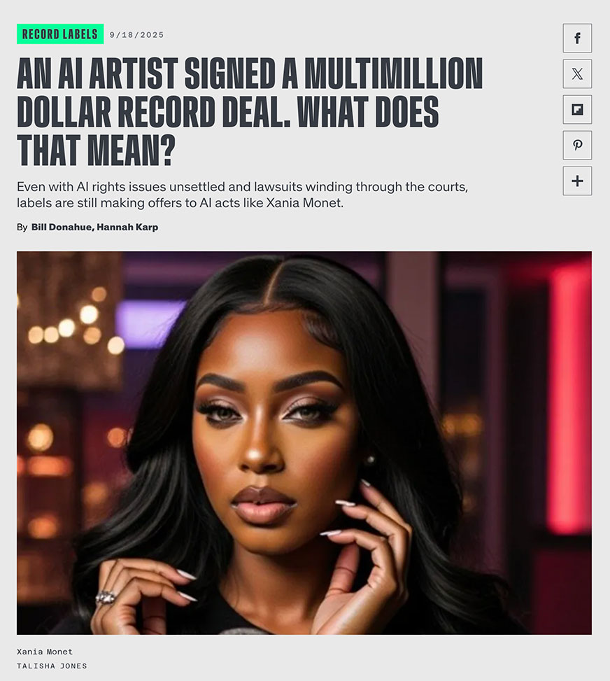AI is rewriting the music business at lightning speed. Billboard just featured Xania Monet, who used AI to land a multimillion-dollar record deal. Click here